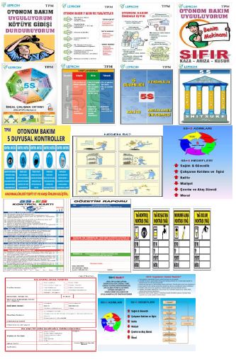 5S poster,flama,afiş,hata kartları,yönetim panoları,etiketleme kartları,görsel kontrol kartları.
